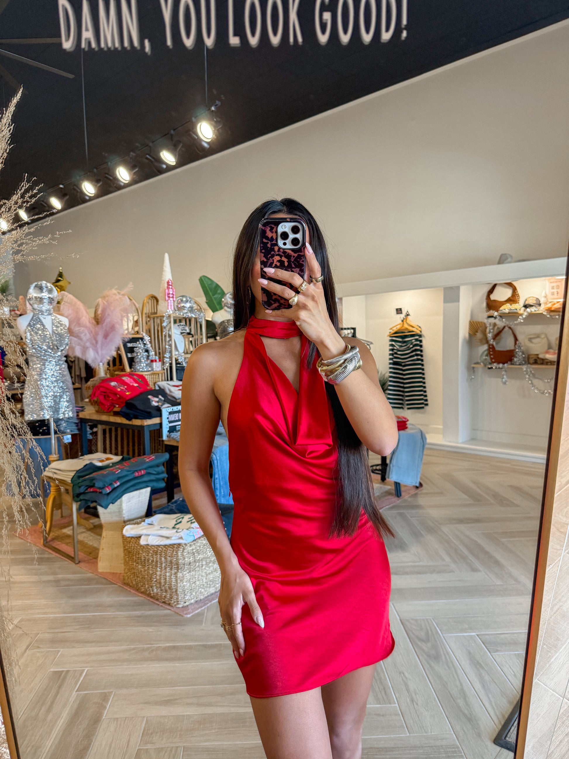 - Satin halter dress