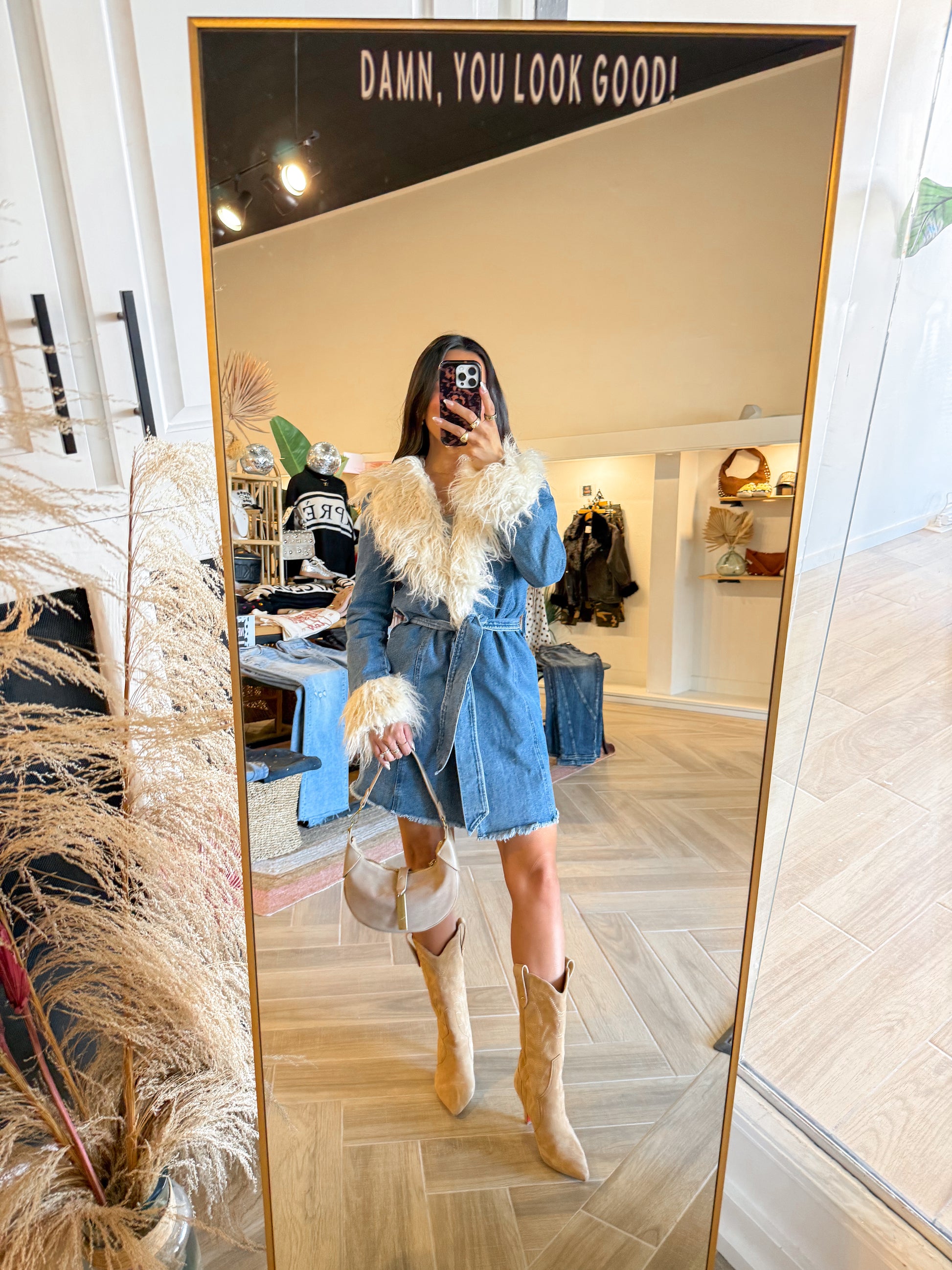 - Denim jacket with shearling detail