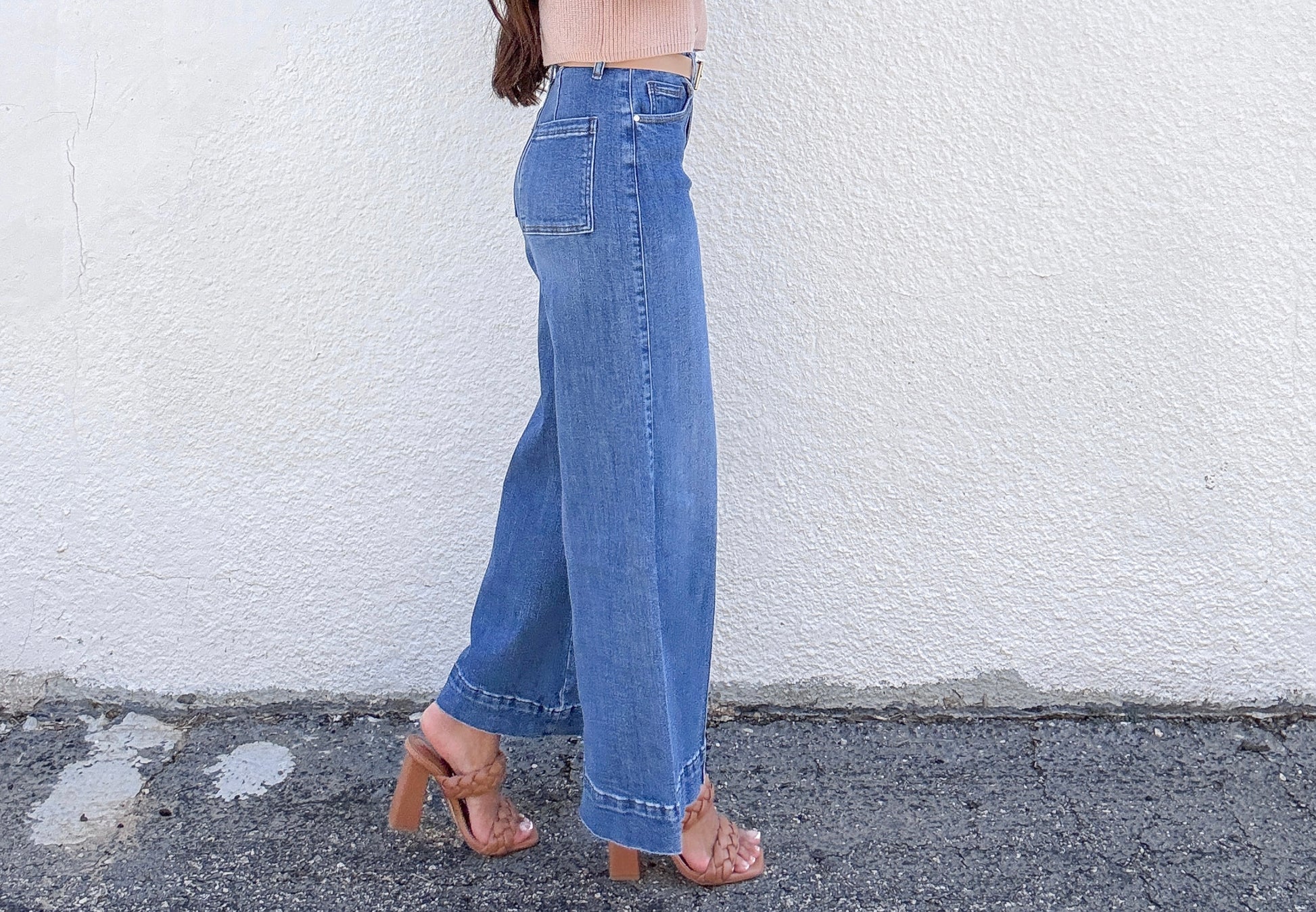 - Cropped wide leg high-rise denim