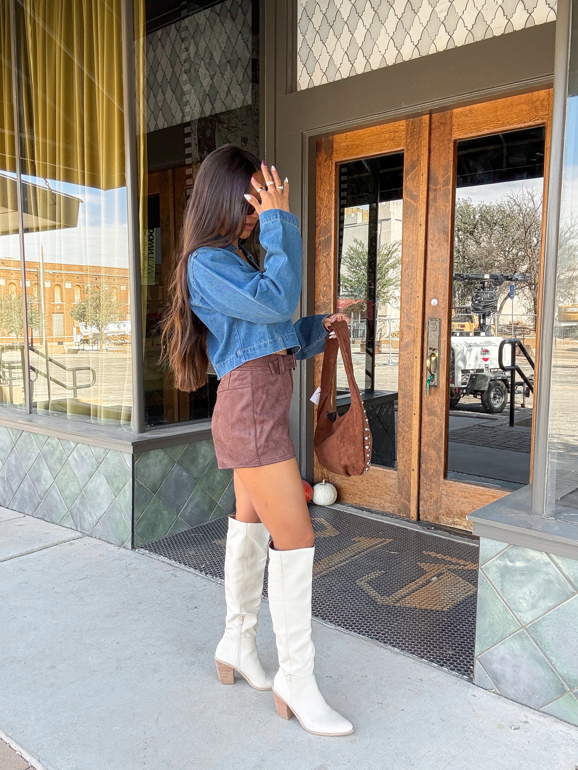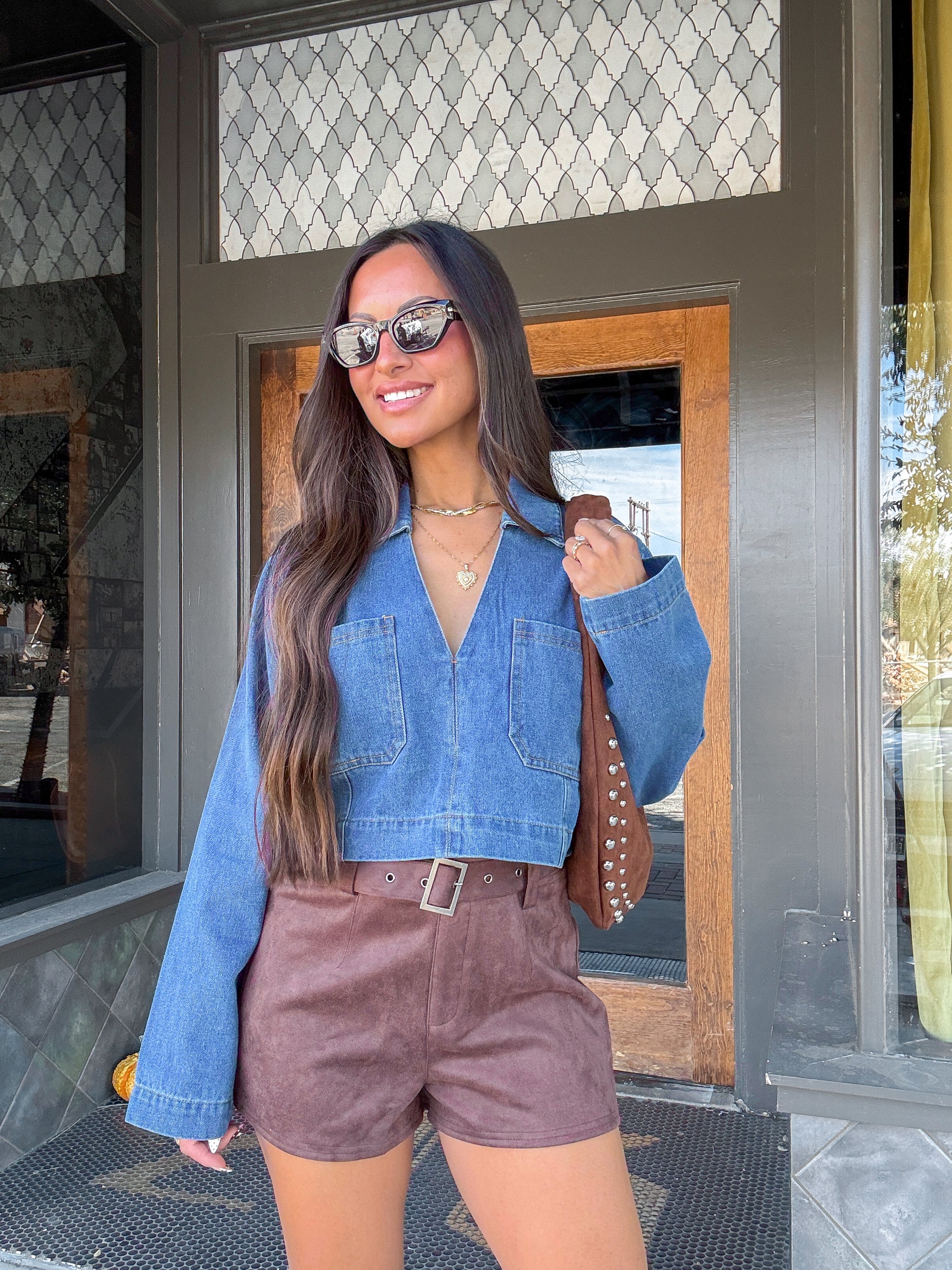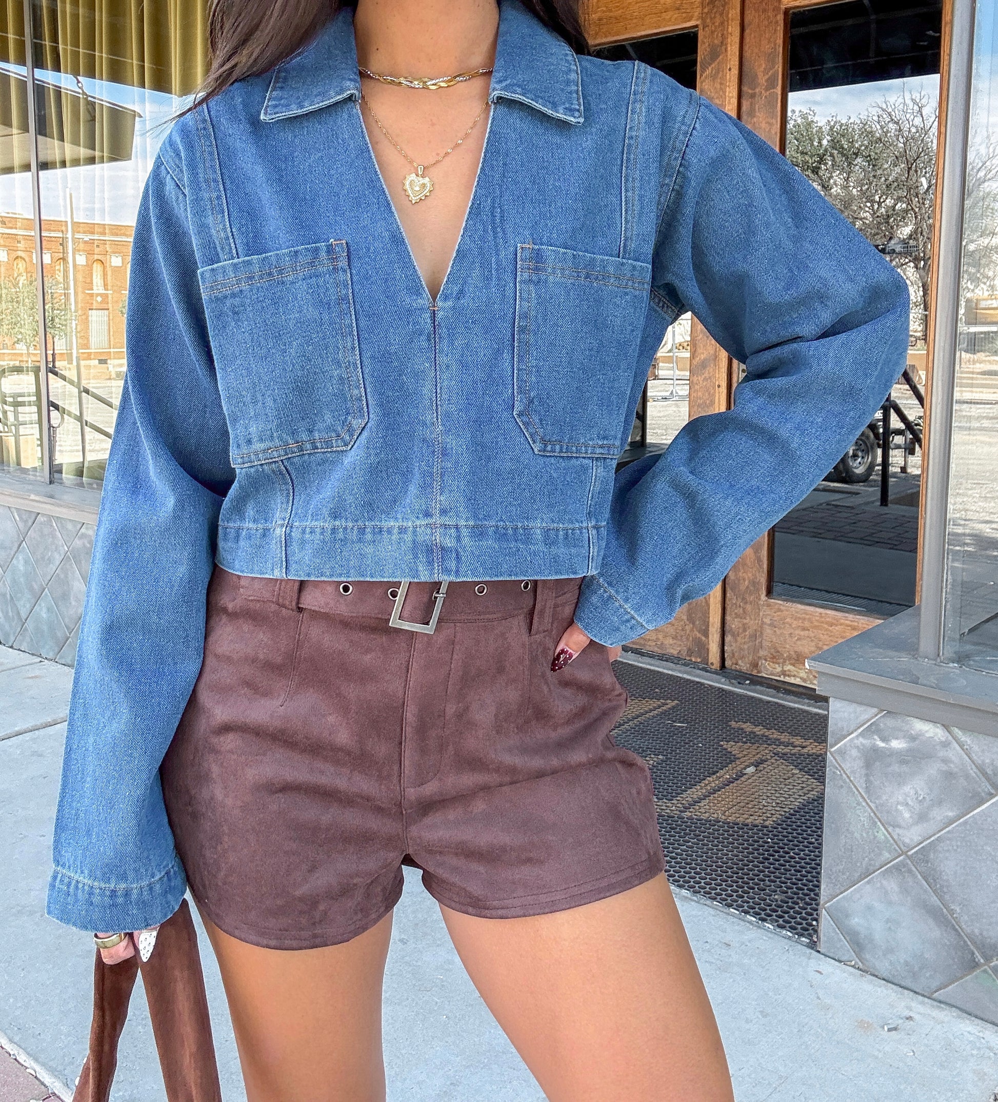 - Long sleeve cropped denim top