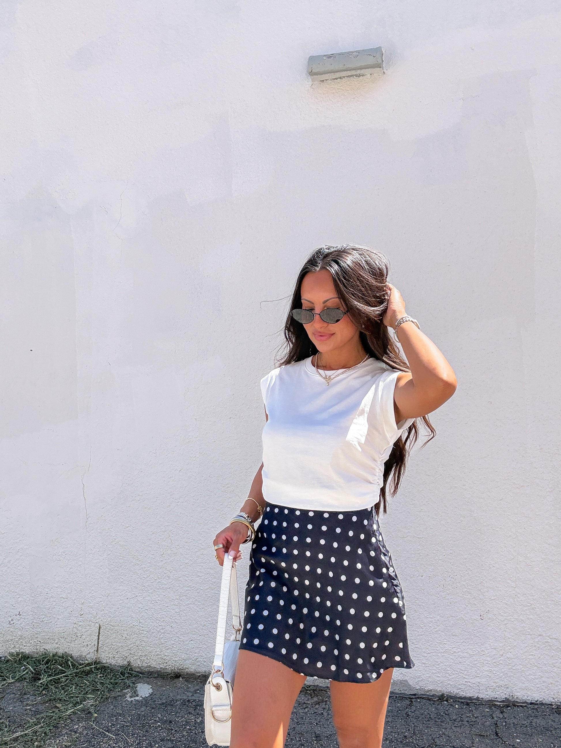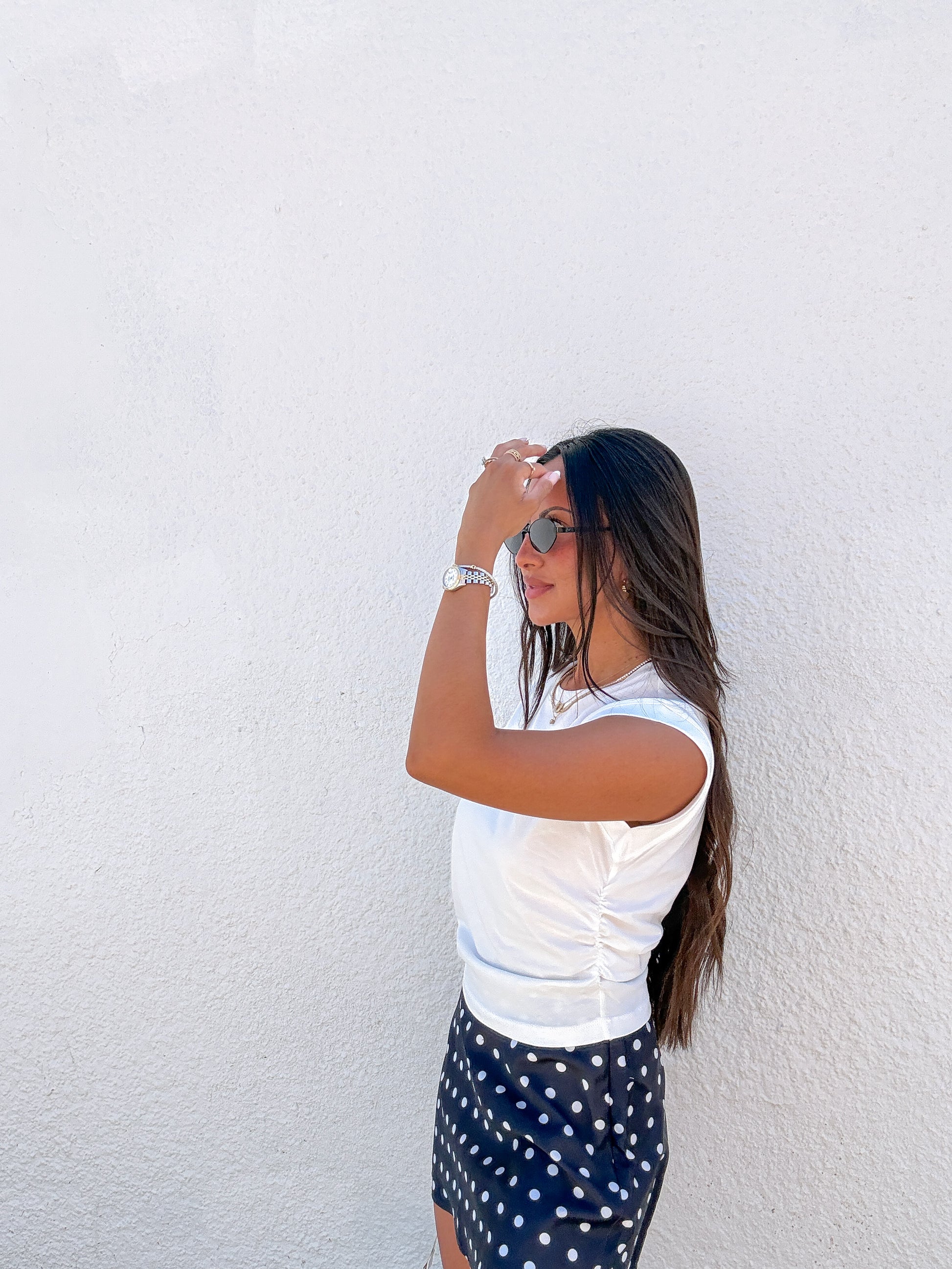 - ruched sides of top